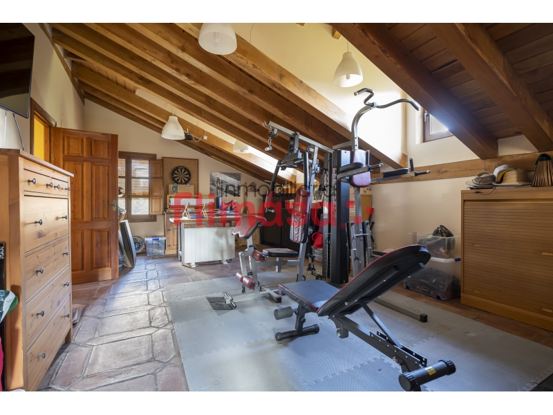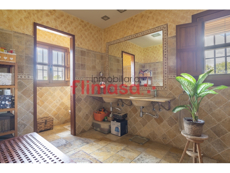 El nivel de acabados es excepcional: suelos de barro artesano en la planta baja, tarima de madera natural en la planta alta, ventanas de madera de iroko, puertas interiores de castaño fabricadas a mano, calefacción por suelo radiante de gasoil y aire acondicionado en las estancias principales.