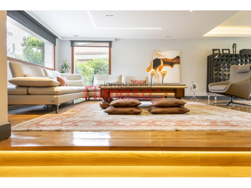 Con una superficie de 306 m² construidos (según catastro) sobre una parcela ajardinada de 1.000 m², esta vivienda destaca por su reforma integral, realizada con materiales de primer nivel. Su fachada ventilada mejora el aislamiento y la eficiencia energética, mientras que los amplios ventanales y la cuidada iluminación indirecta inundan cada estancia de luz natural y crean un ambiente moderno y acogedor.