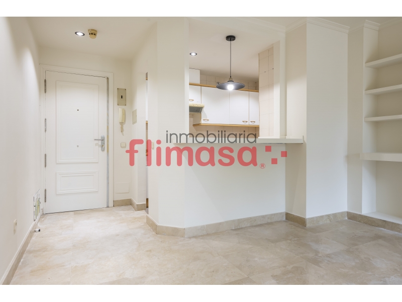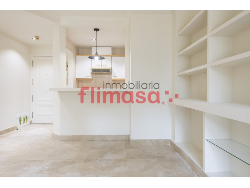 Apartamento de 70m² con un salón amplio y luminoso con cocina americana integrada, un dormitorio con armario empotrado y un baño con hidromasaje.