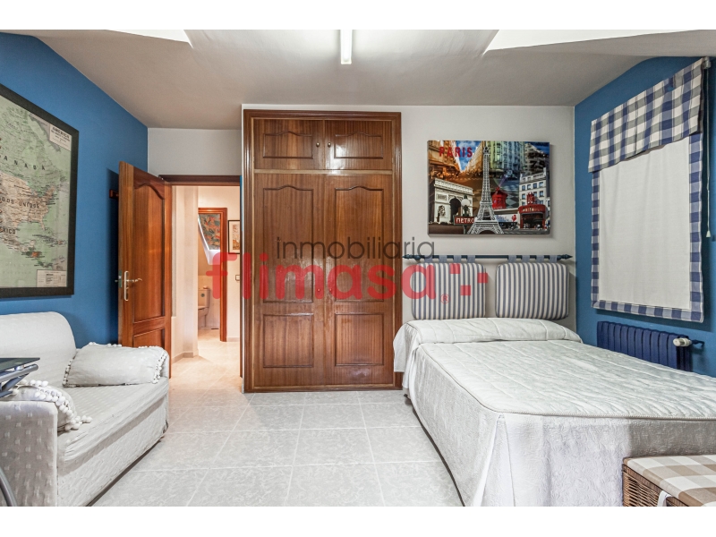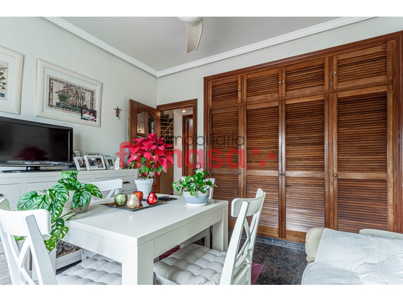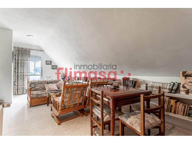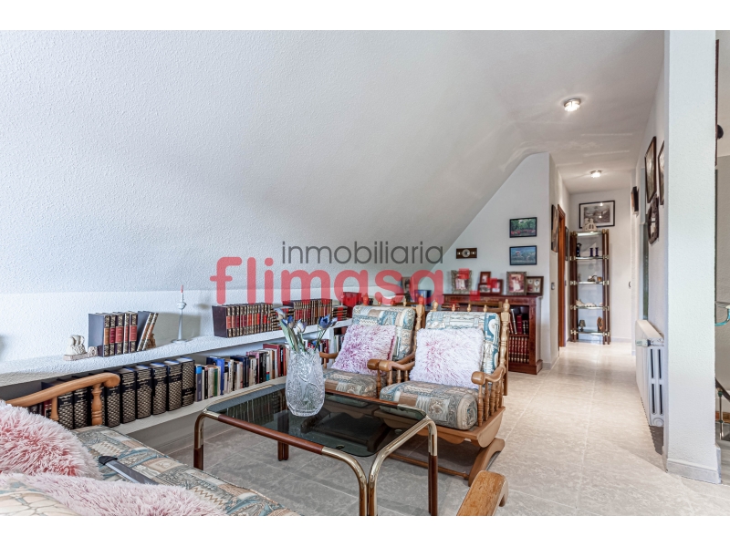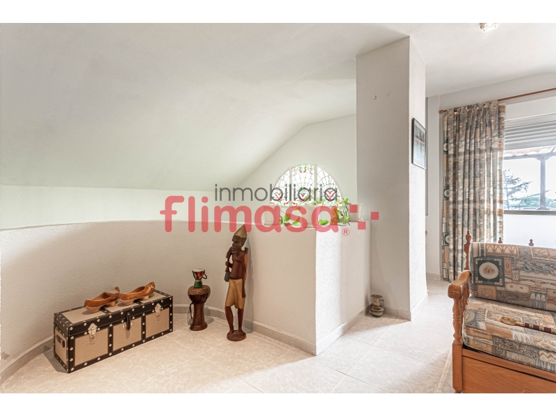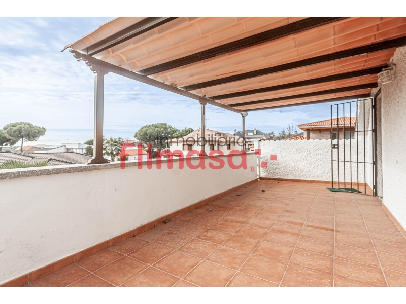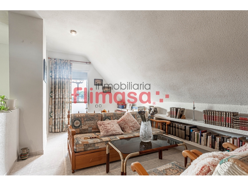 La planta primera ofrece una segunda sala de estar con salida a una amplia terraza con pérgola, dos dormitorios y un baño completo, presentando múltiples posibilidades de reforma o actualización para adaptar la vivienda a distintos estilos y necesidades.