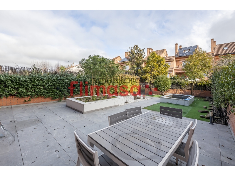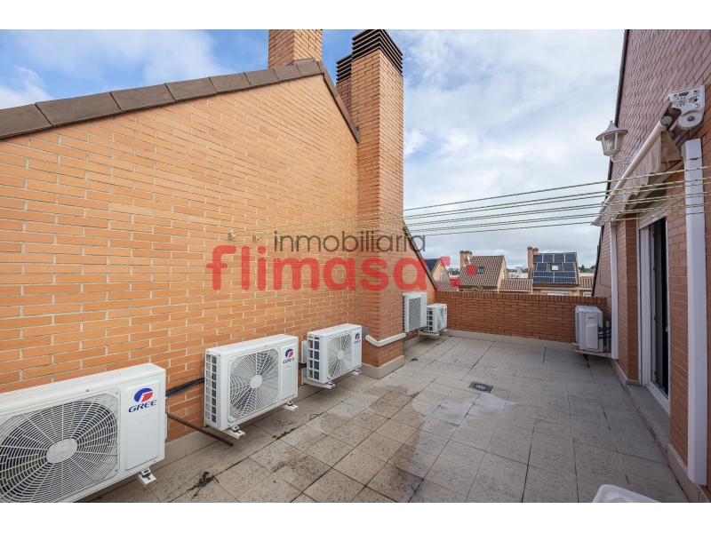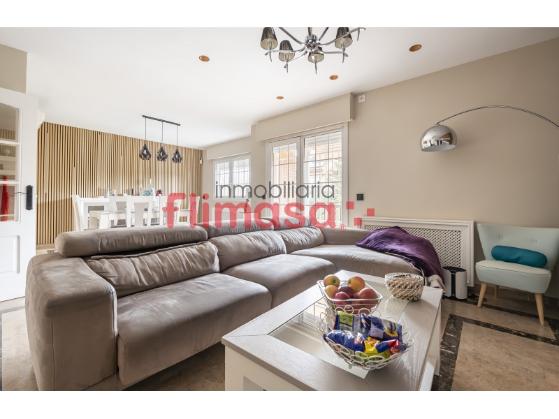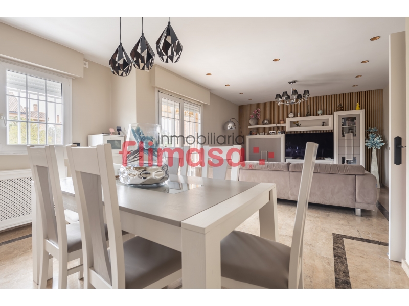 Chalet adosado de 271 m² con una gran parcela de 255 m². Toda la vivienda ha sido reformada íntegramente con mucho gusto, cuidando cada detalle. Dispone de ventanas de PVC blanco oscilobatientes, con mosquiteras y persianas automáticas de aluminio térmico, aire acondicionado, calefacción individual de gas natural (caldera cambiada recientemente), toldos.