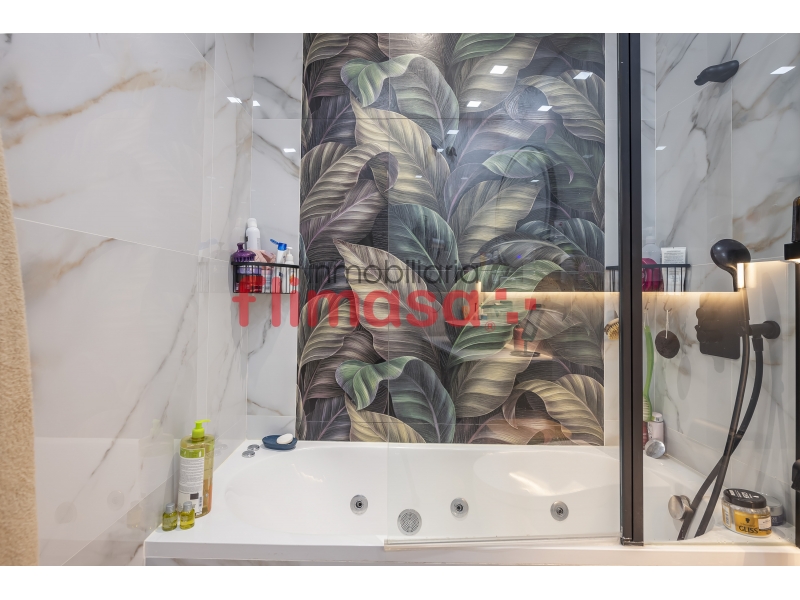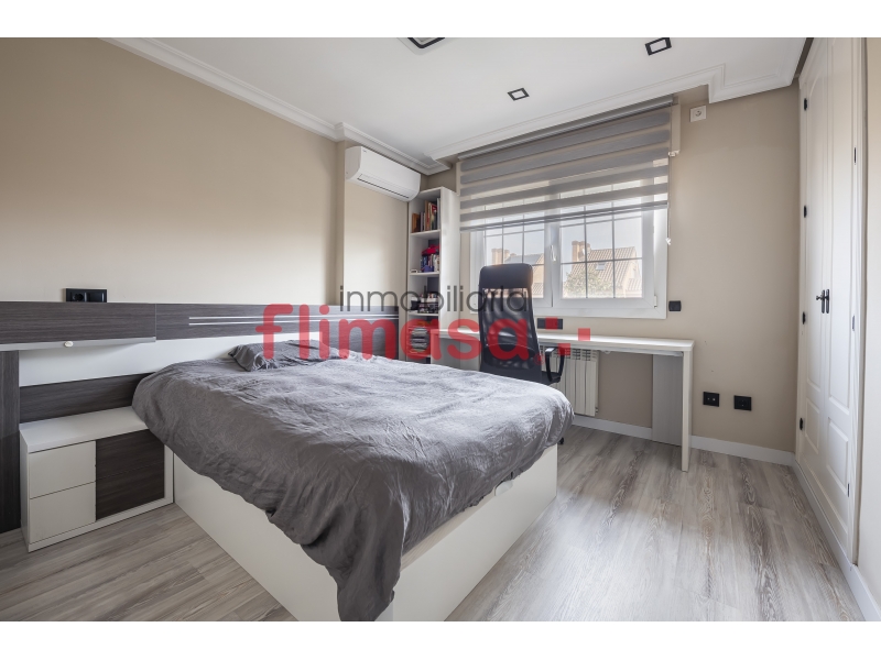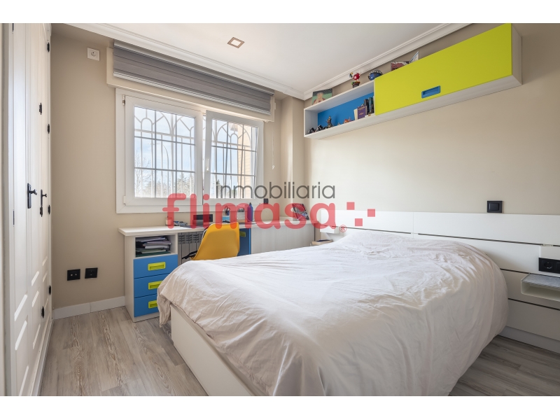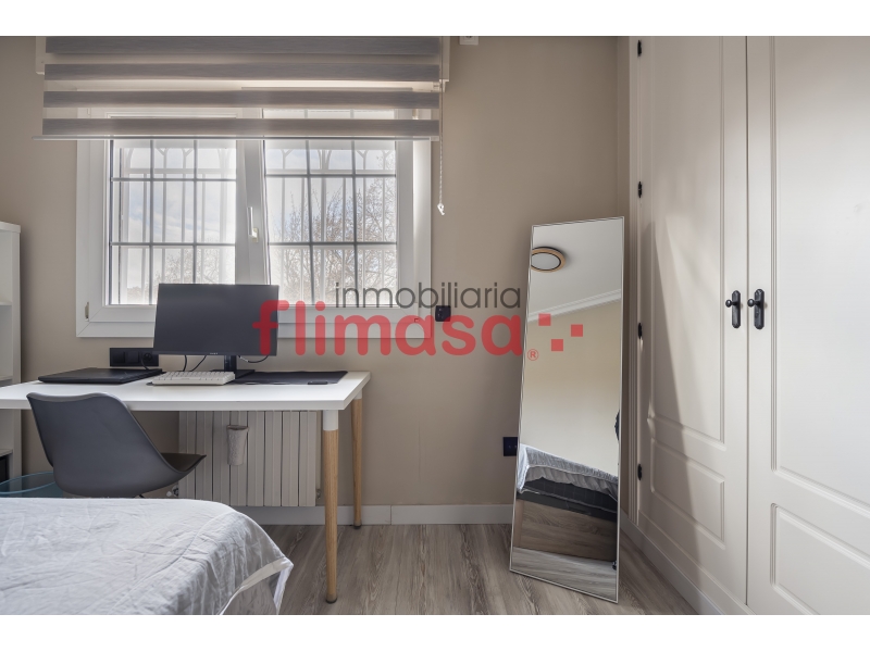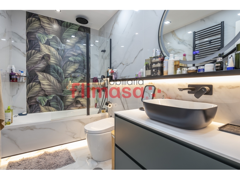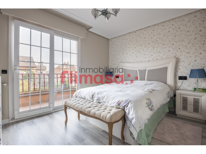 Subiendo a la primera planta, llegamos a la zona de descanso. El dormitorio principal dispone de armario empotrado y baño en suite, totalmente reformado, con bañera de hidromasaje y lavabo encastrado. En esta planta se sitúan además tres dormitorios adicionales, todos con armarios empotrados, y un segundo baño completo, también reformado, con ducha, puerta corredera y lavabo de dos senos. Una planta pensada para el confort diario de toda la familia.