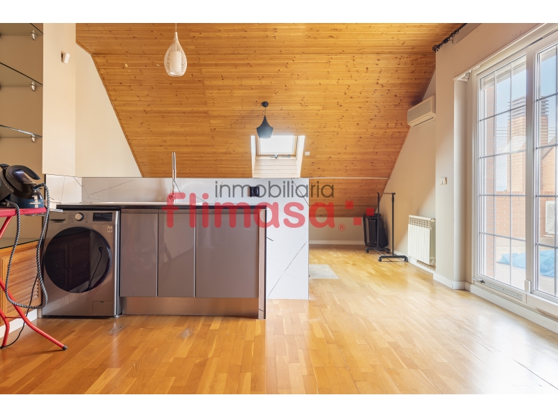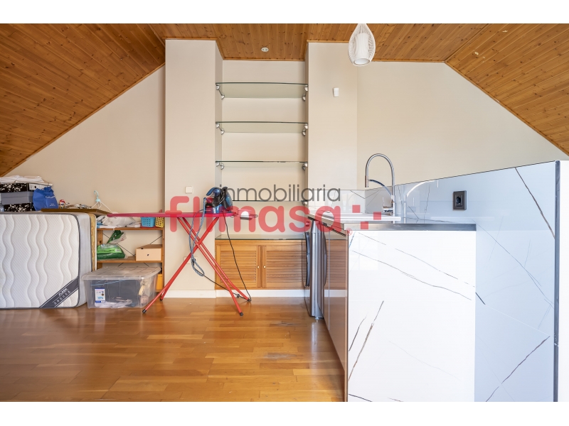 La buhardilla diáfana es otro de los espacios más especiales de la vivienda. Con una superficie muy generosa, ventana tipo Velux y salida directa a un solárium privado con toldo, se convierte en un espacio perfecto como zona de ocio, despacho, sala de juegos o incluso dormitorio adicional.