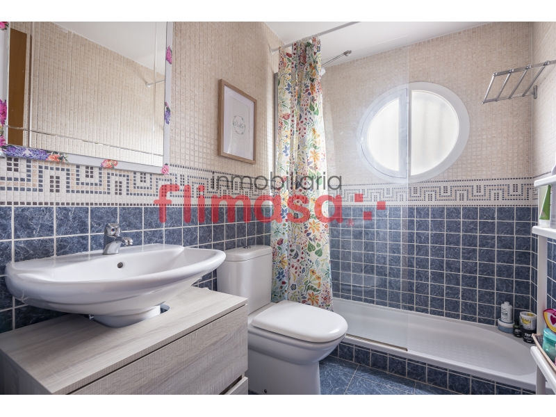 En cuanto a calidades y equipamiento, la vivienda dispone de calefacción individual de gas natural, aire acondicionado en el salón y dormitorio principal, cinco paneles solares, ventanas de aluminio blanco con climalit, rejas, mosquiteras, toldos y persianas automáticas. Cuenta además con piscina propia, así como acceso a piscina comunitaria, combinando privacidad y zonas comunes.