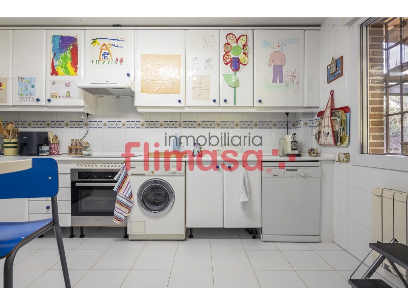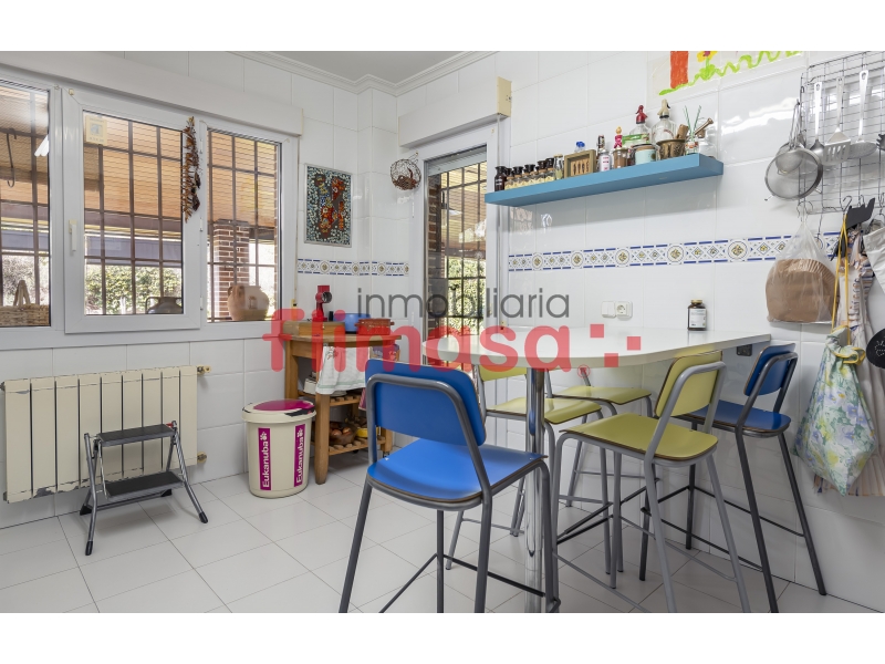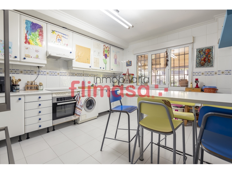 En planta calle encontramos un salón independiente de más de 45 m² con chimenea, una estancia muy cómoda para el día a día. La cocina, amueblada a ambos lados, resulta práctica y funcional, y tiene salida directa al porche trasero techado de más de 45 m², un espacio que invita a disfrutar del exterior durante todo el año.