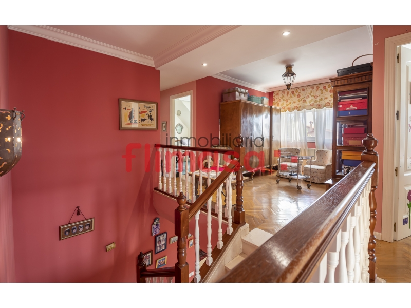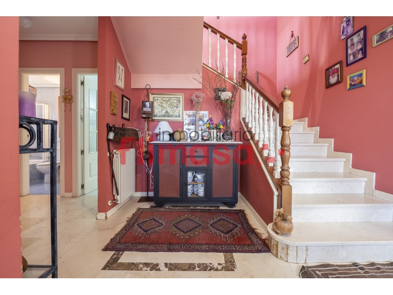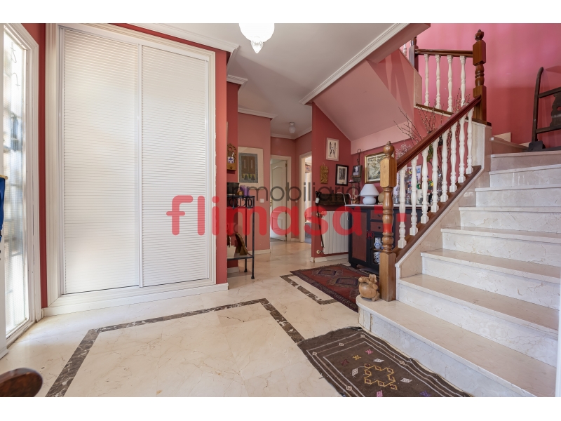 Estupendo chalet independiente junto Universidad Europea. La vivienda cuenta con 262 m² construidos sobre una magnífica parcela de 1.225 m², con orientación este-oeste, lo que garantiza luz natural durante todo el día. Desde la entrada, el amplio hall ya marca el carácter de la casa: espacios generosos y bien distribuidos.