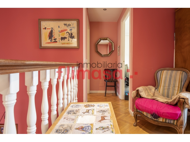 La planta primera mantiene la misma sensación de amplitud. El dormitorio principal supera los 22 m², dispone de zona vestidor y baño en suite con jacuzzi. Además, encontramos tres dormitorios adicionales, todos con armarios empotrados y buenas dimensiones, un segundo baño completo y una agradable sala de estar que puede funcionar como zona de estudio o rincón de lectura.