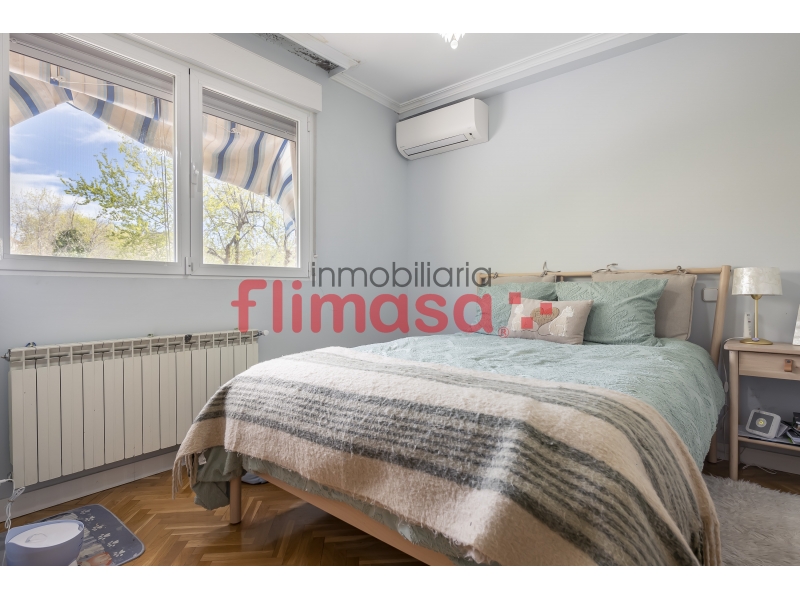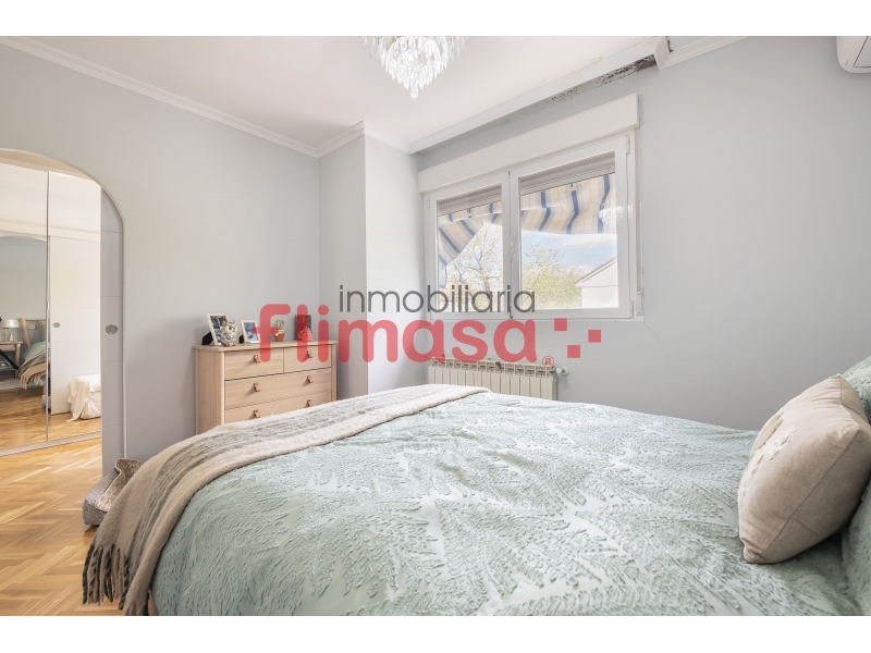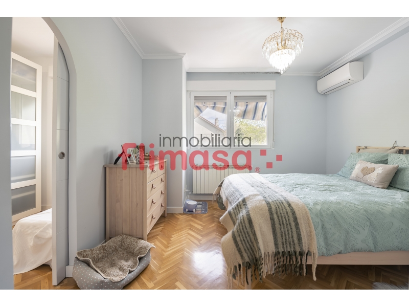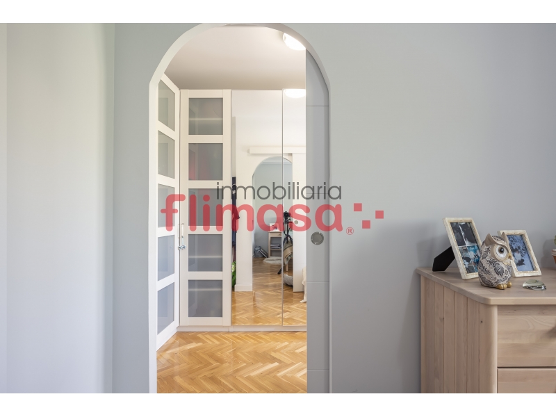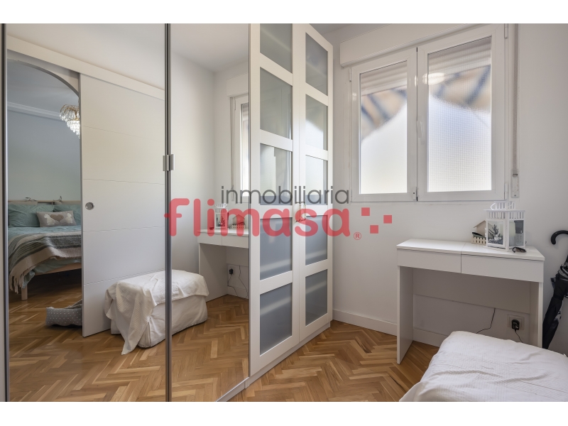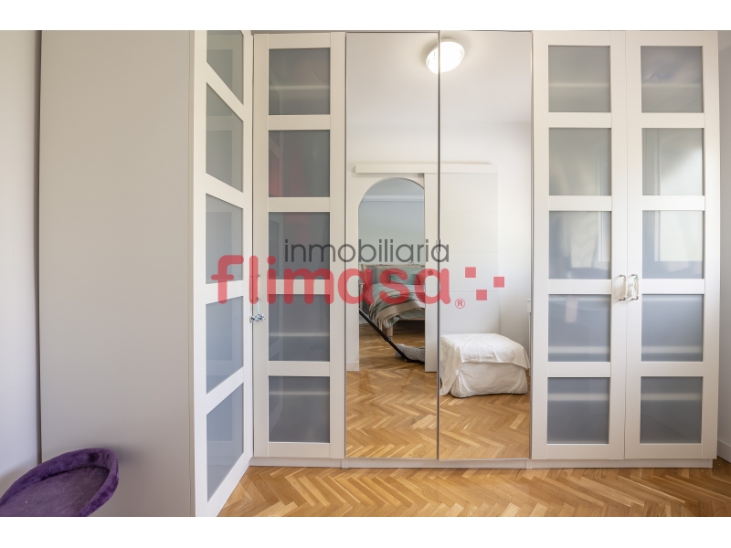 En la planta primera es donde realmente se aprecia la amplitud que se ha conseguido con la reforma. El dormitorio principal cuenta con un gran vestidor de casi 8 m² y baño en suite. El segundo dormitorio es especialmente amplio, con más de 18 m², también con baño incorporado.