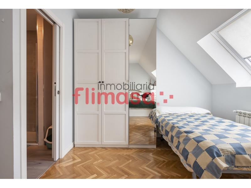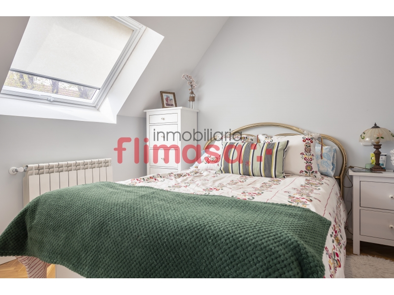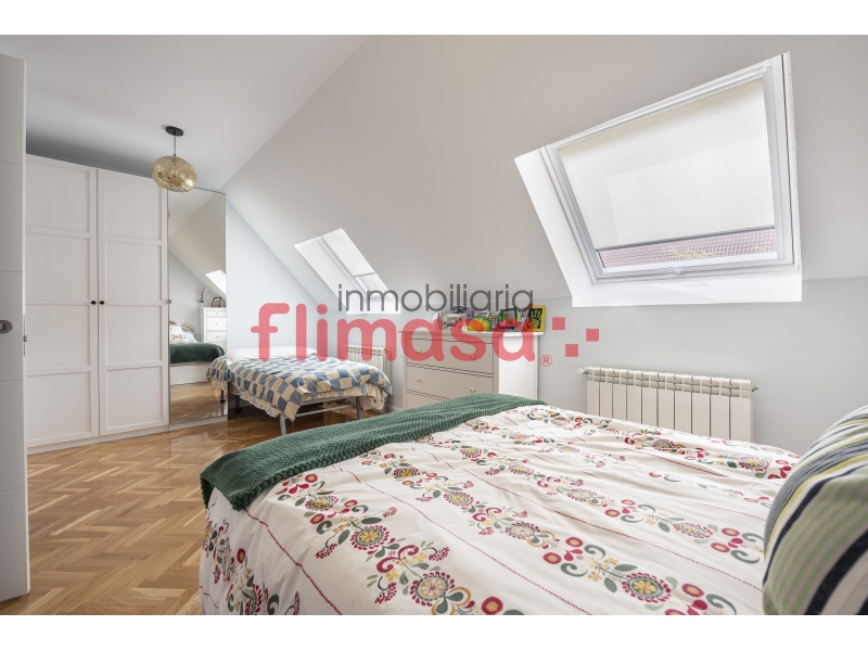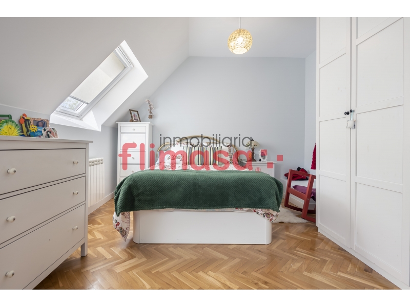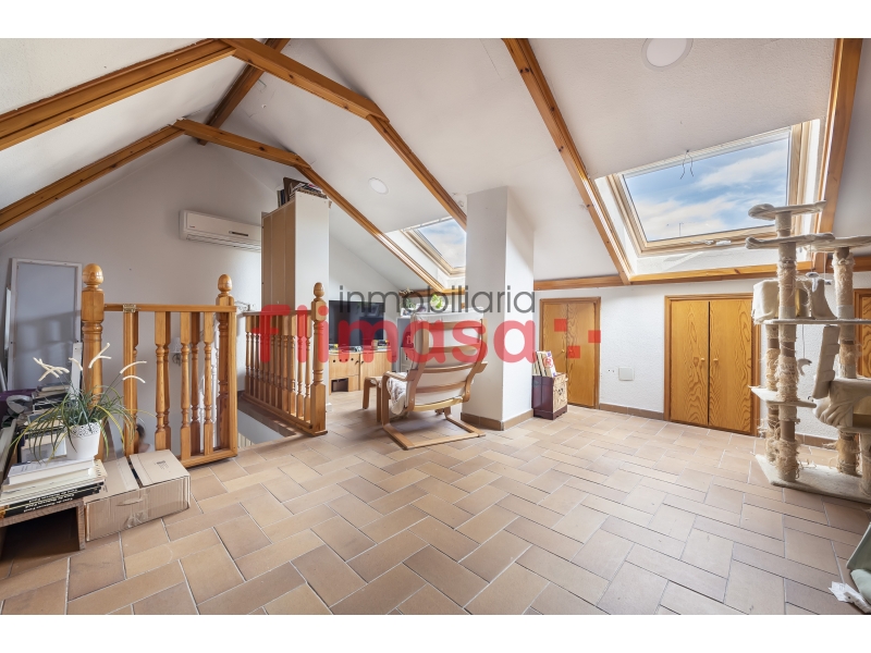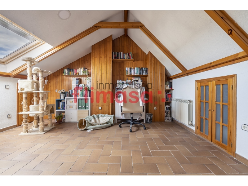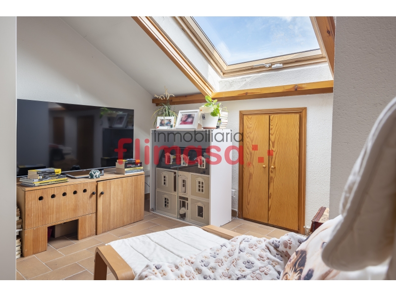 La buhardilla, de unos 25 m² diáfanos, es otro punto fuerte de la vivienda: un espacio muy versátil, con buena capacidad de almacenaje gracias a sus armarios bajeros y con climatización, perfecto como zona de trabajo, ocio o dormitorio adicional.