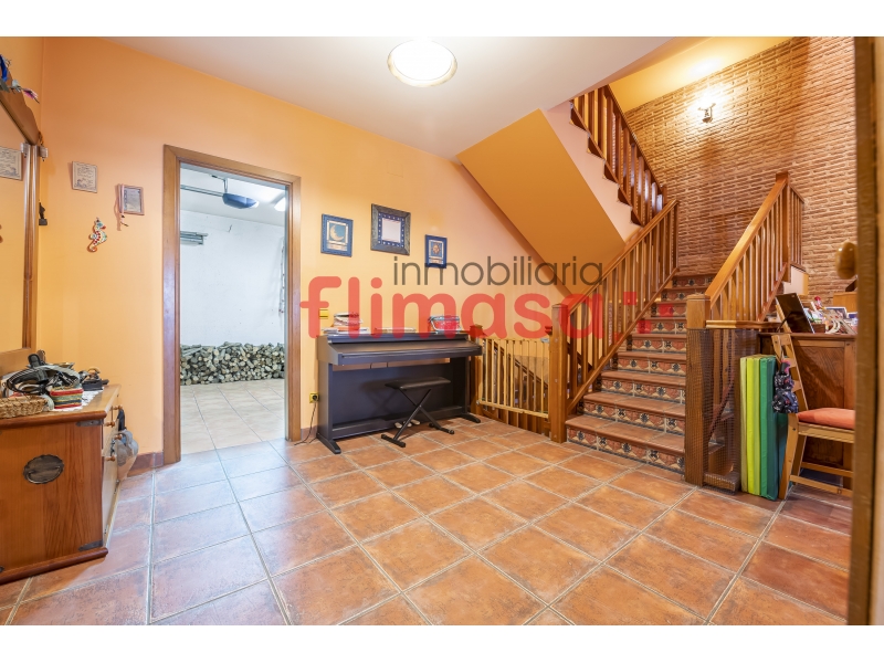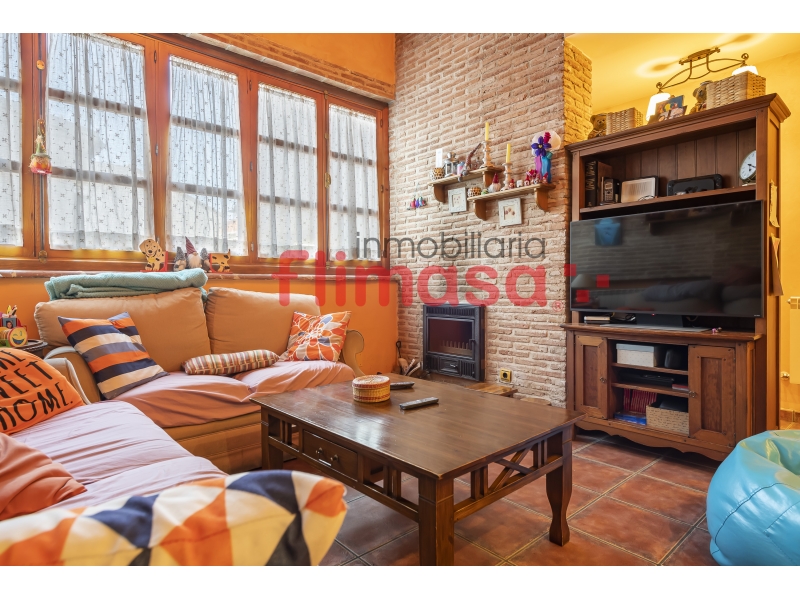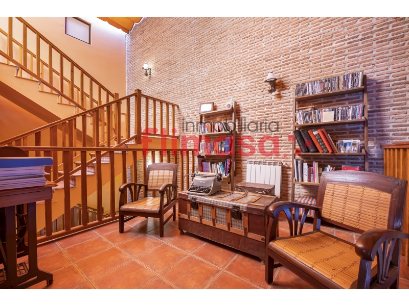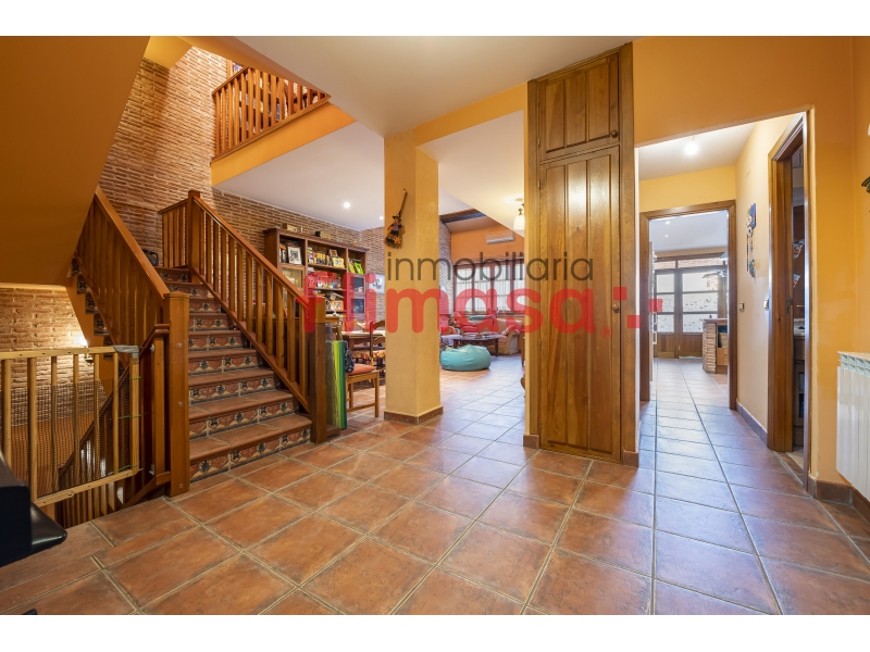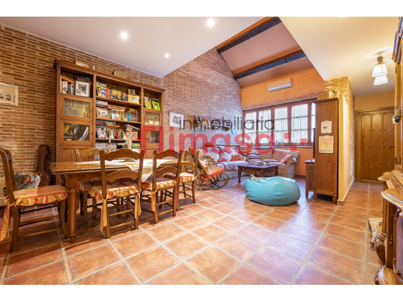 Al entrar, la casa sorprende con un espectacular salón a doble altura, coronado por un lucernario que inunda de luz natural toda la estancia. Un espacio protagonista, abierto, acogedor y con chimenea, que conecta directamente con el porche y un amplio patio solado de 65 m², perfecto para disfrutar del exterior en plena zona centro.
