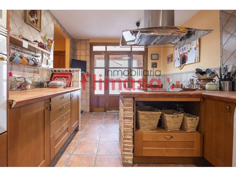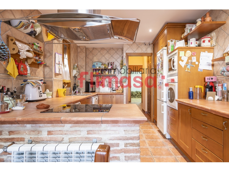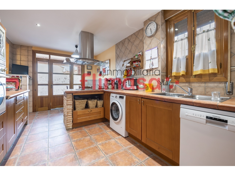 En la planta baja, además del impresionante salón, encontramos una gran cocina independiente con despensa, un aseo de cortesía y un garaje amplio, algo especialmente valioso en esta ubicación donde disponer de aparcamiento privado es un auténtico privilegio.