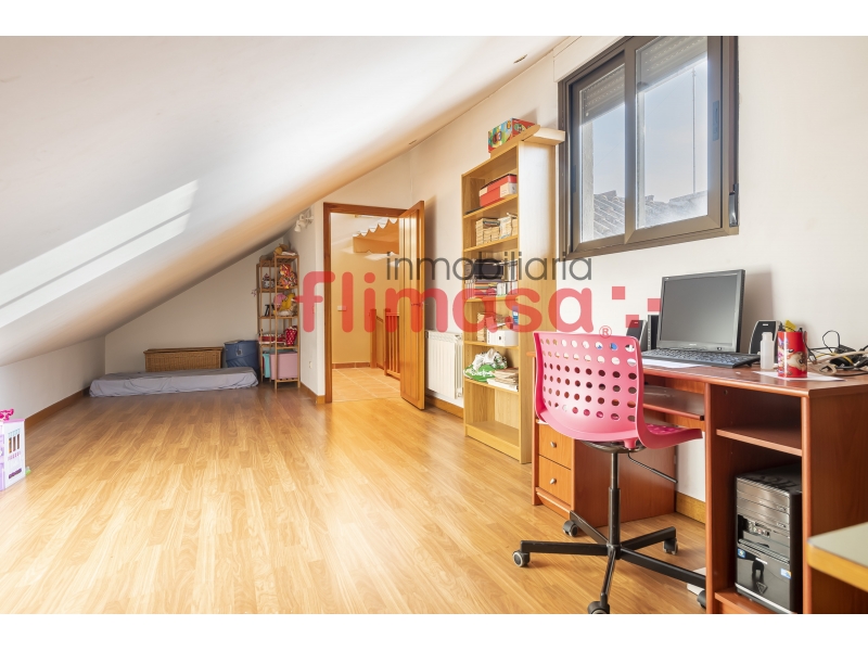 La buhardilla ofrece una gran estancia adicional de 28 m², ideal como despacho, sala de juegos o zona independiente, con gran luminosidad y dos radiadores.